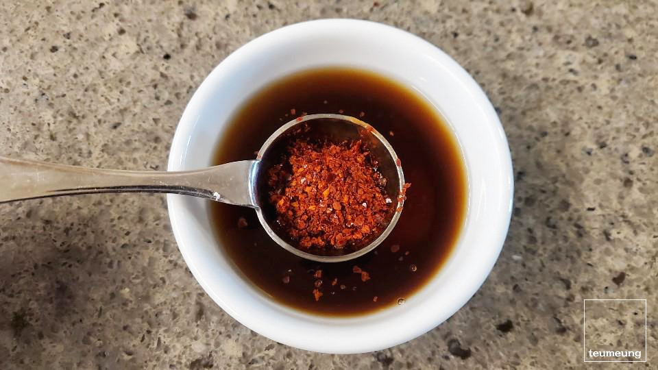 고춧가루 반 큰 술 넣고 잘 섞어줍니다.