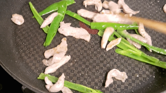양념은 한 번에 다 넣지 마시고 고기와 고추 양에 맞게 넣어서 볶아주는 게 좋습니다.