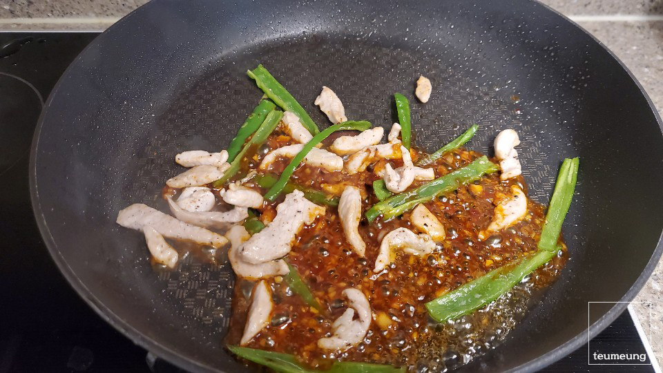 고추가 숨이 죽어가고 양념도 고기에 잘 스며들었다면