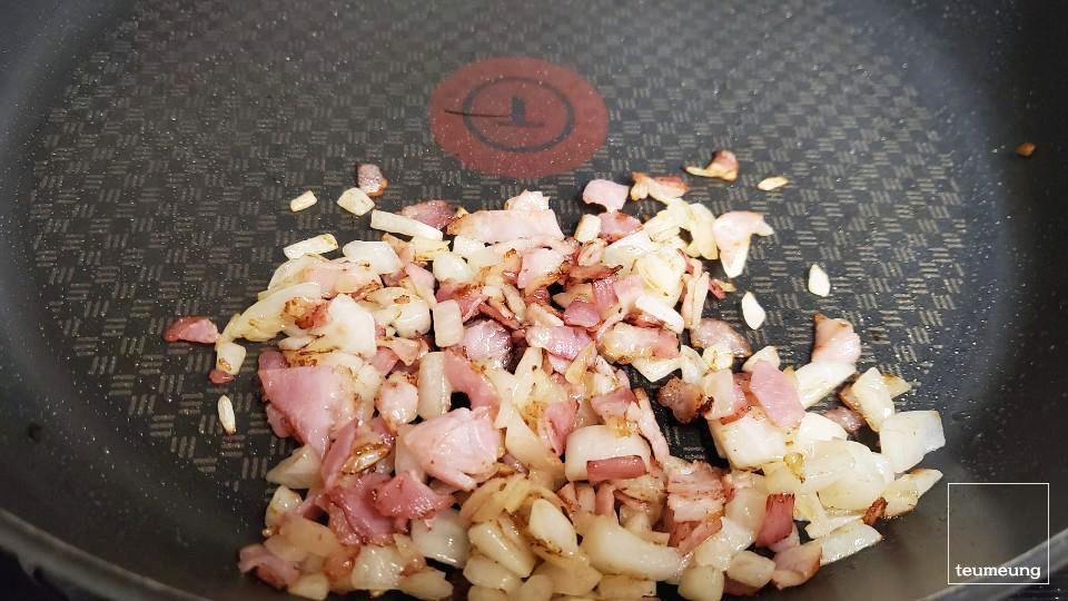 양파와 베이컨을 볶아줄 건데요.