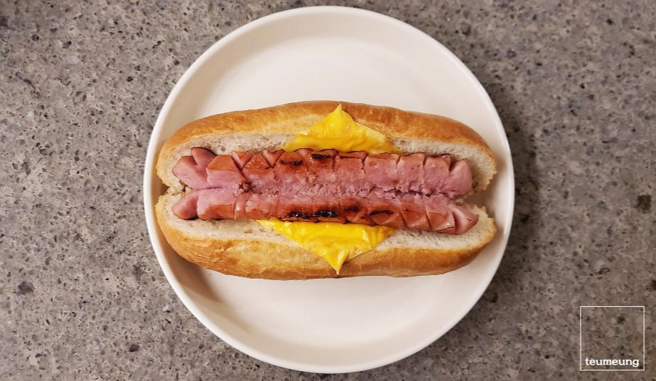 핫도그 빵이 아닌 냉동 바게트 빵을 준비했는데요.