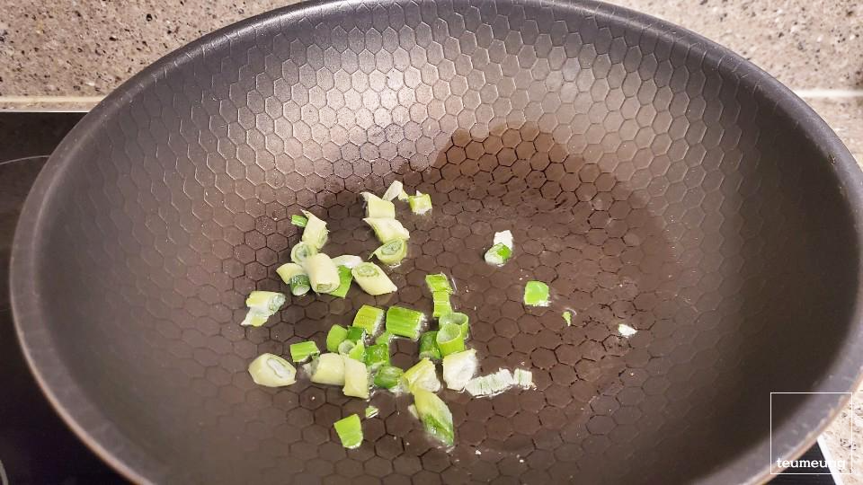 김치를 볶기 전에 먼저 파 기름을 만들어 줍니다.