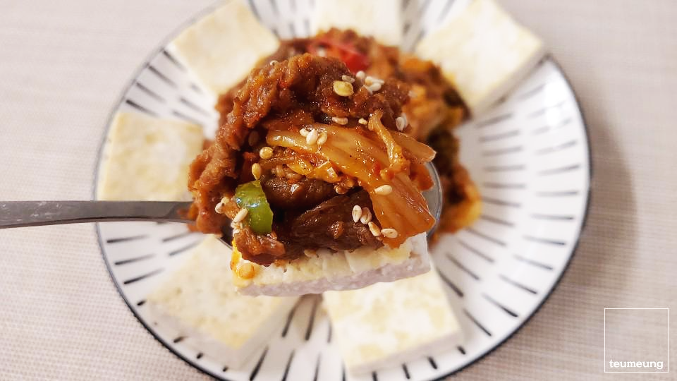 밥 대신 두부에 고기와 김치를 잔뜩 올려서 먹어도 좋아요. ㅎㅎ