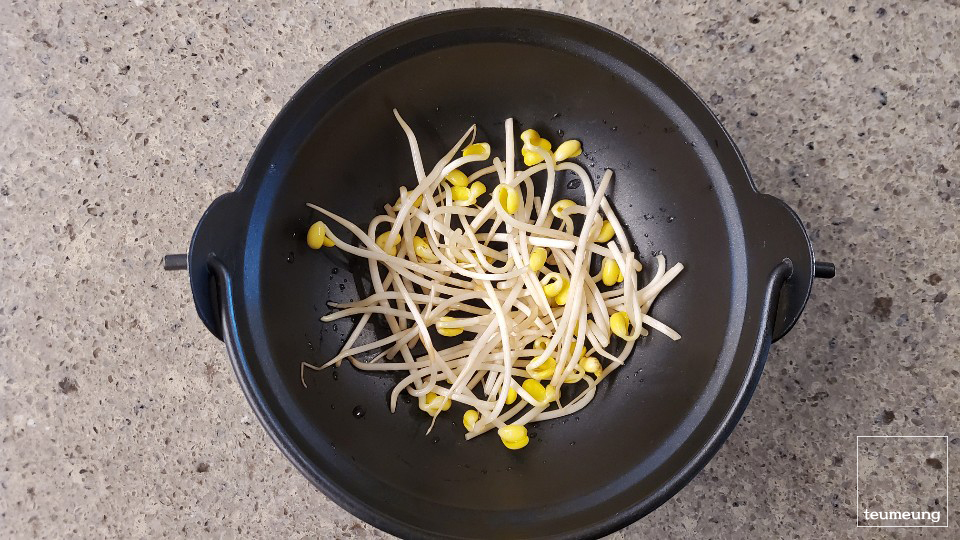 맨 아래 깨끗하게 씻어둔 콩나물을 깔아줍니다.