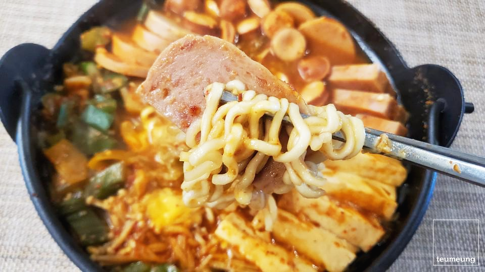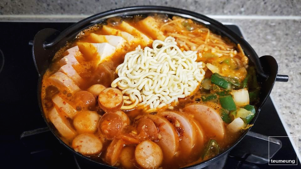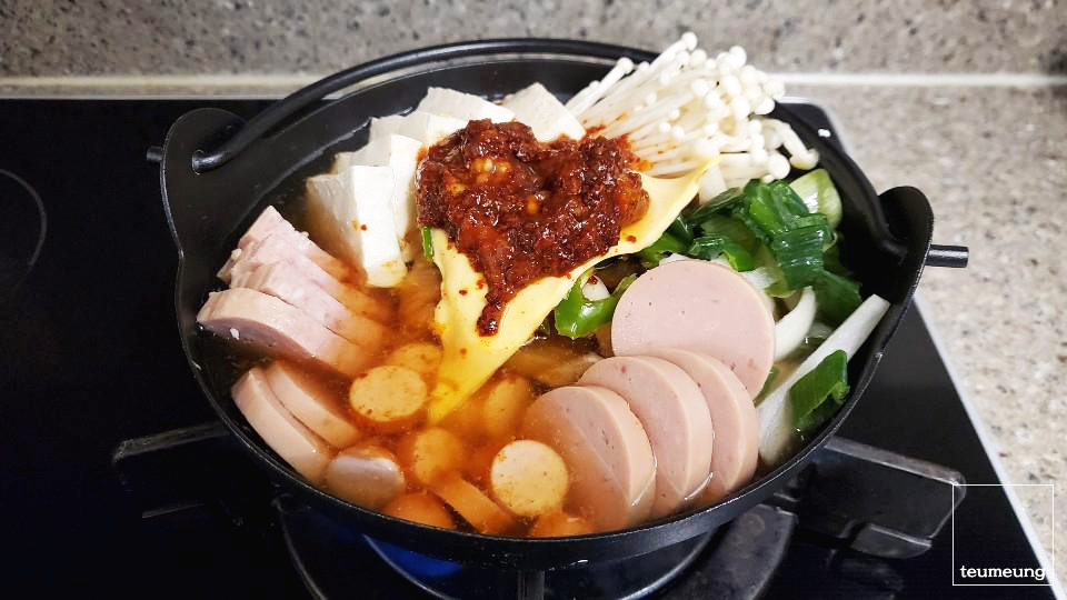부대찌개 양이 많을 경우에는 한 스푼씩 더 늘려주시면 됩니다.