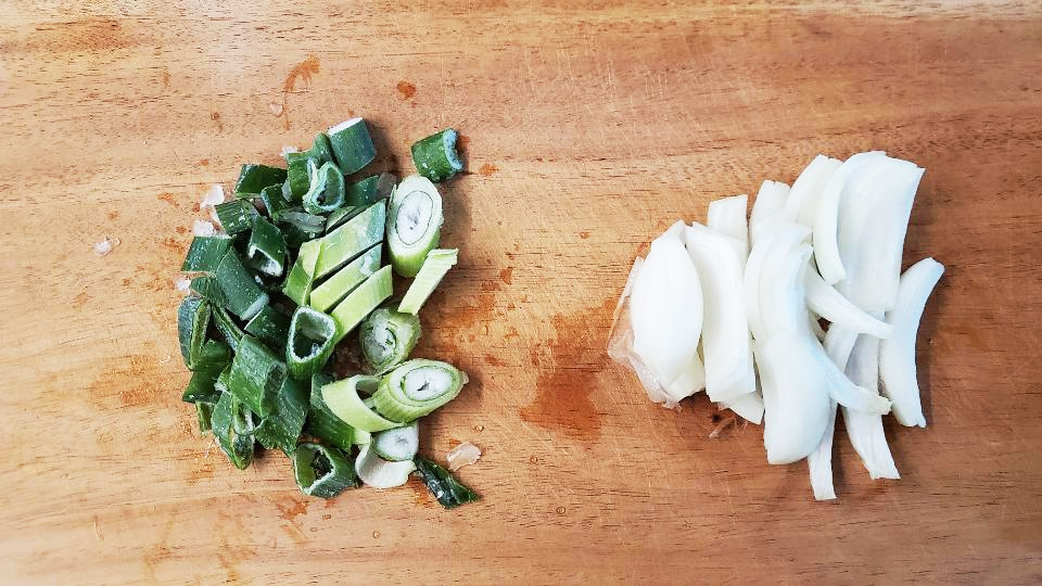 파는 송송 썰고 양파는 채 썰어 주세요.