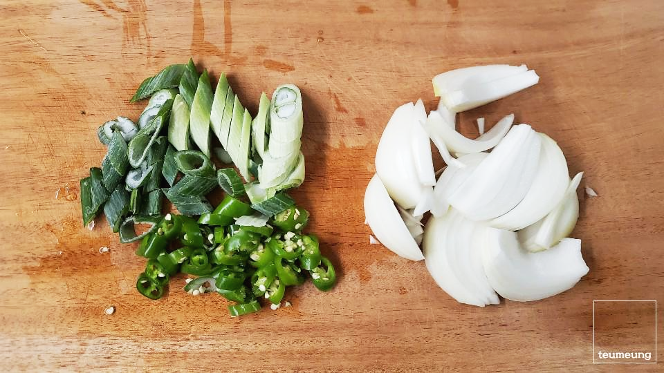 파와 청양고추는 송송 썰어서 준비해주세요.