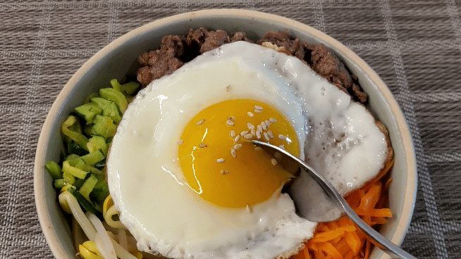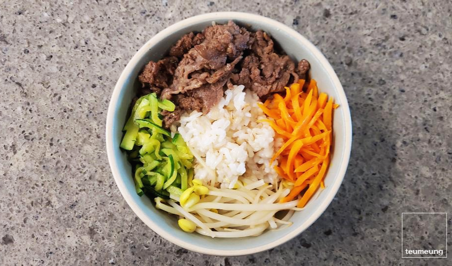 비빔밥은 집에 있는 재료를 넣어 비벼먹으면 끝이지만