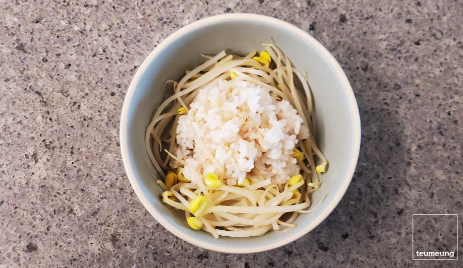 참기름이 빠질 수 없죠.. ㅎㅎ 콩나물은 전체적으로 깔아줬어요.