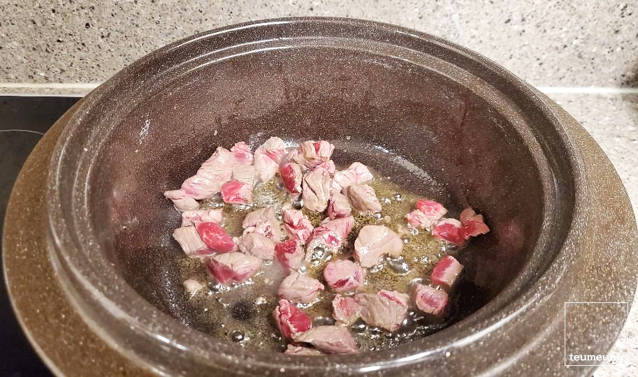 고기 겉면이 살짝 익을 정도로 중간불로 달달 볶아줍니다.