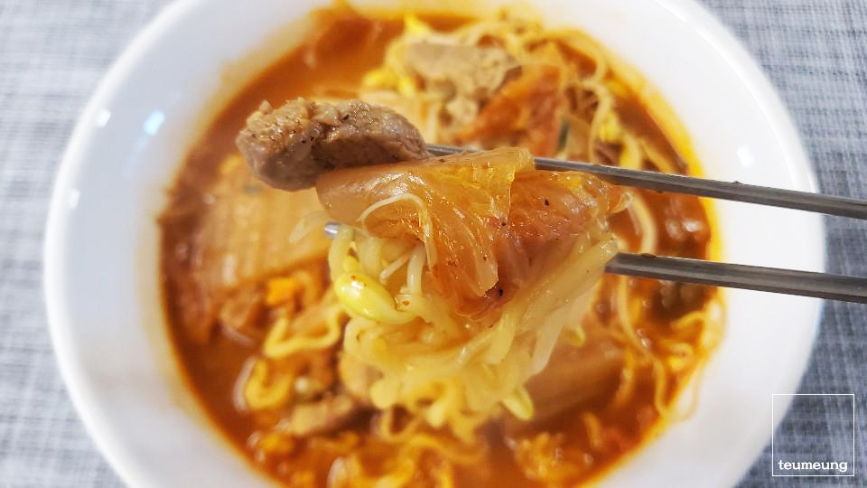 오늘은 어제 과음한 탓으로 돼지김치라면을 만들어 먹었답니다.