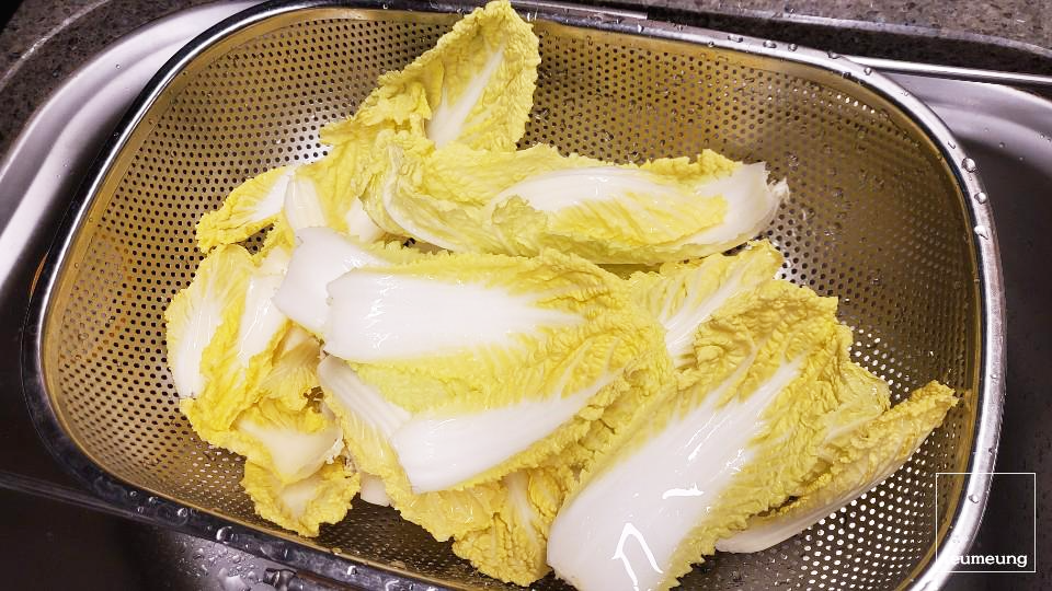 먼저 배춧잎은 한장씩 뜯어서 물에 가볍게 씻어주세요.