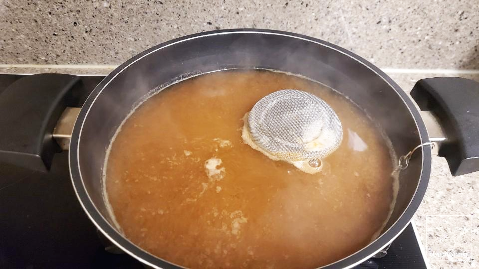깔끔한 국물 맛을 위해서 체에 걸러서 넣어주세요.