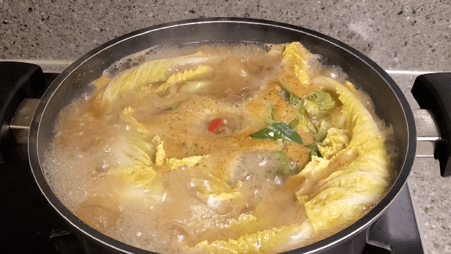 이제 다시마는 건져두고 배추를 넣어줄게요.