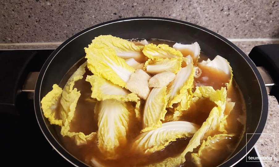 배추랑 한데 넣어 끓여주세요.