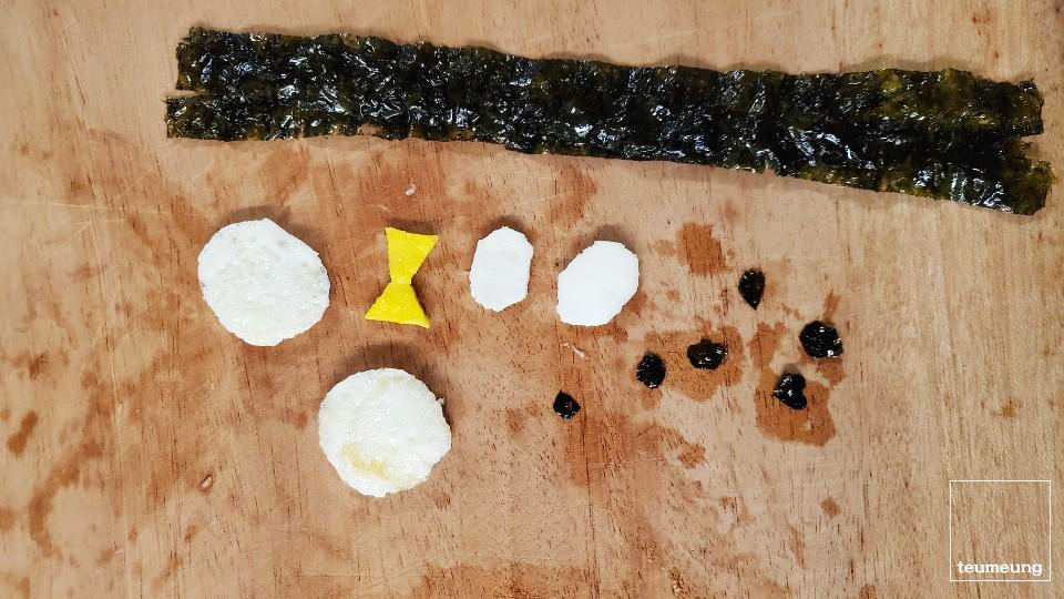 이제 곰돌이햄만 얹어주고 김띠를 돌려주면 끝! ㅎㅎ