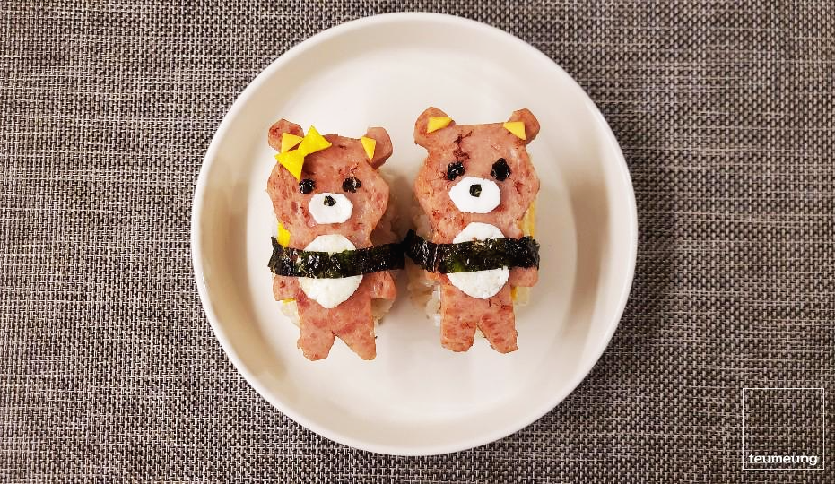 < 어린이 도시락 추천! 귀여운 곰돌이 스팸 주먹밥 만들기 >