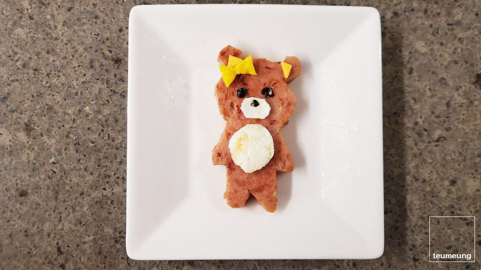 햄을 곰돌이 모양으로 잘라주면 되는데요