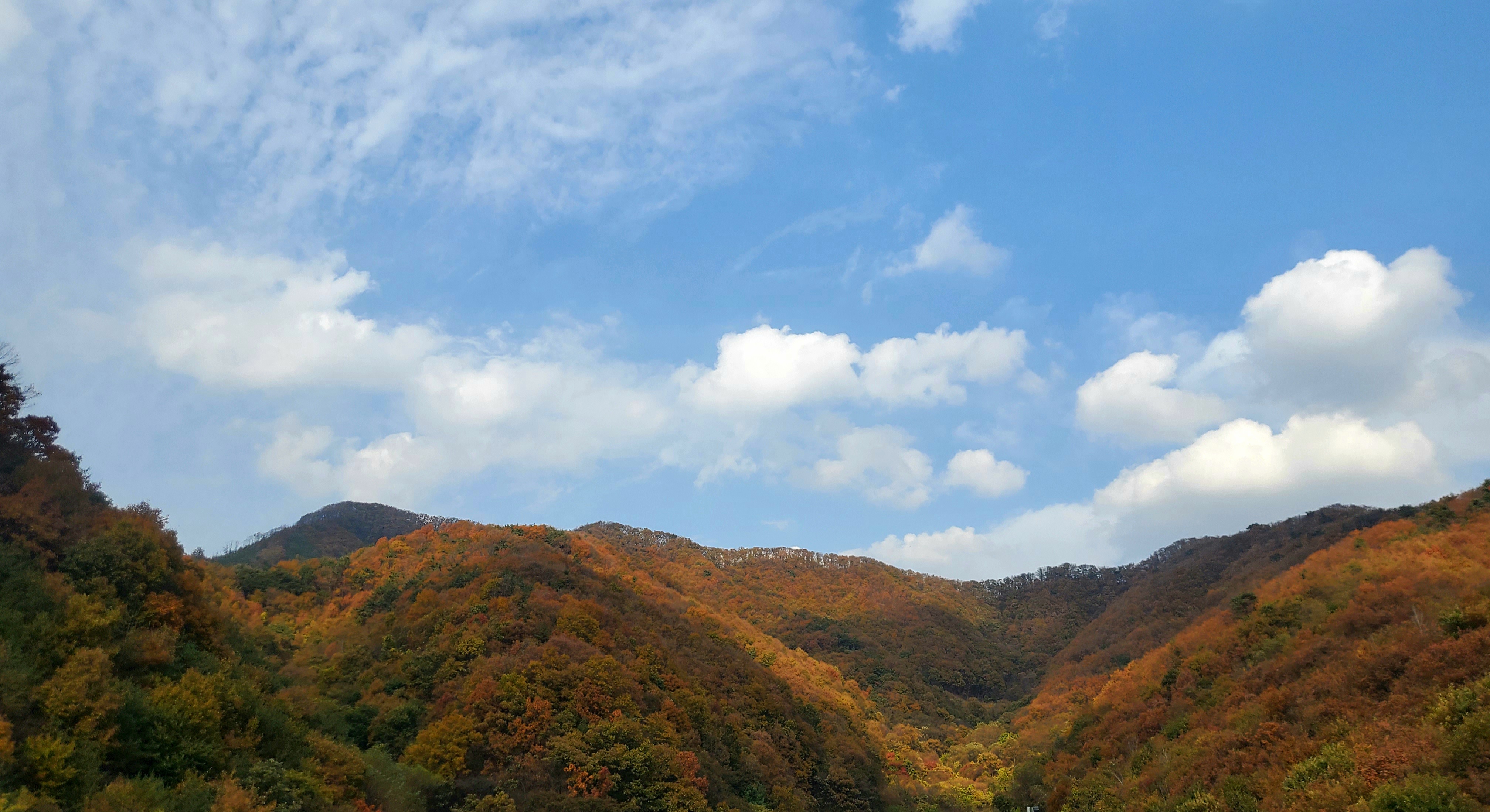 단풍진 나무들과 산이 주홍주홍 ㅎㅎ