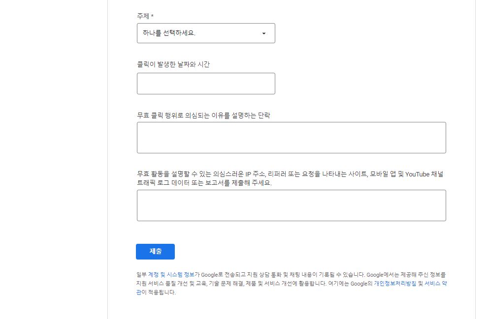 위 주소로 들어가면 바로 애드센스 고객센터 무효클릭 신고양식이 뜹니다.