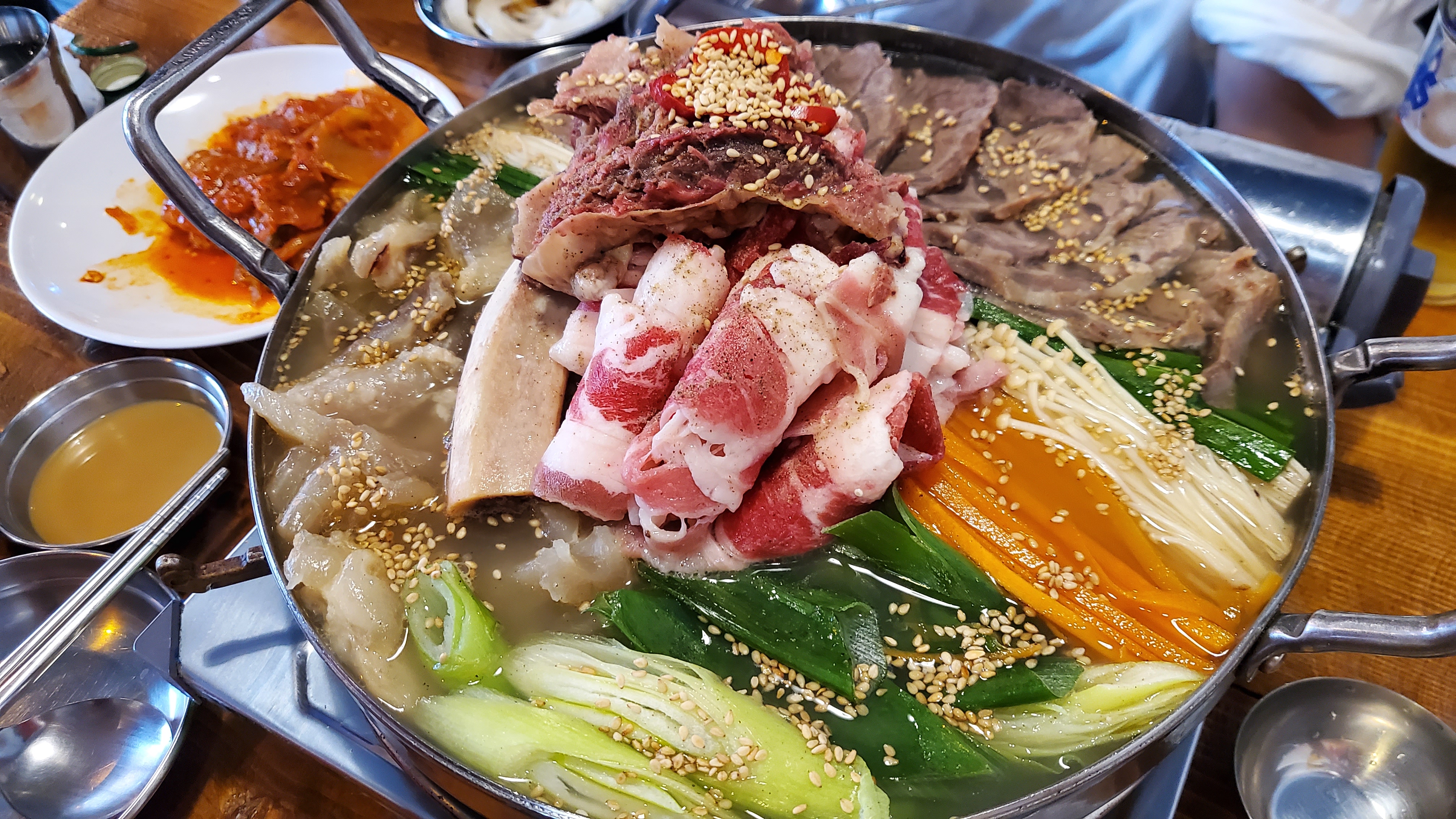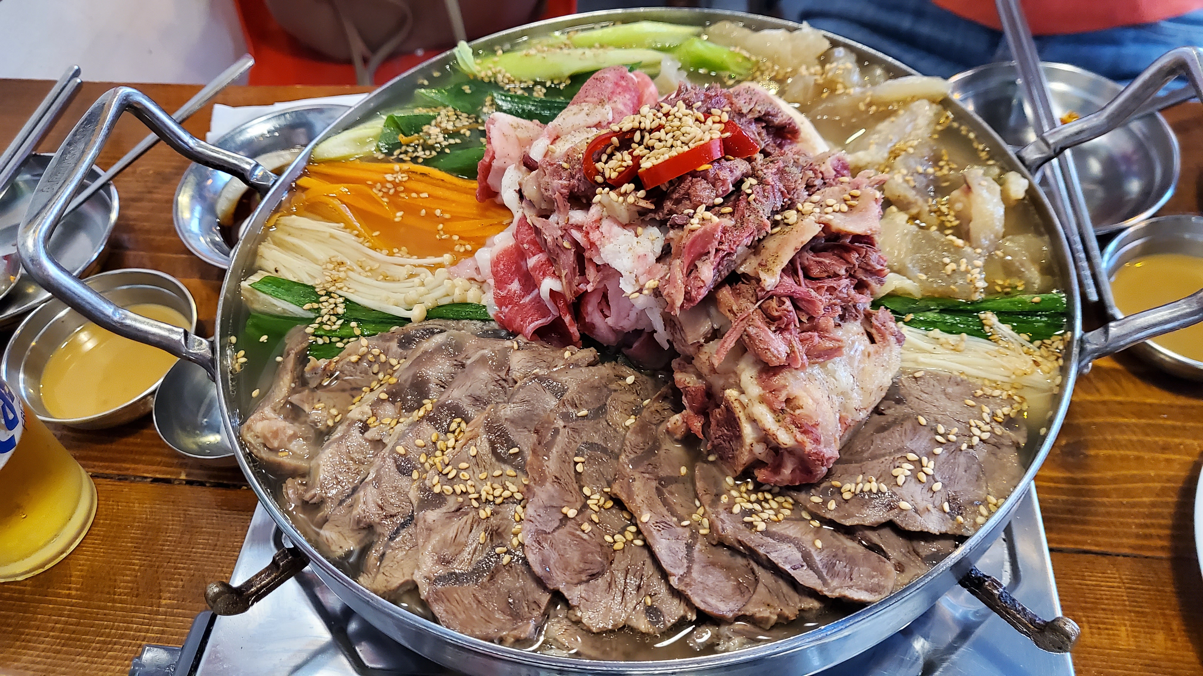 맛있게 보글보글 끓어가는 소고기 모듬수육 전골 !