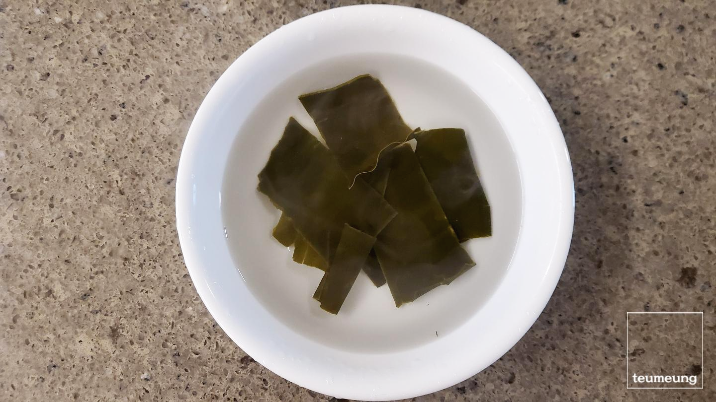 저는 사골육수가 없어서 다시마 여러 장을 뜨거운 물에 20분 정도 담가뒀답니다.