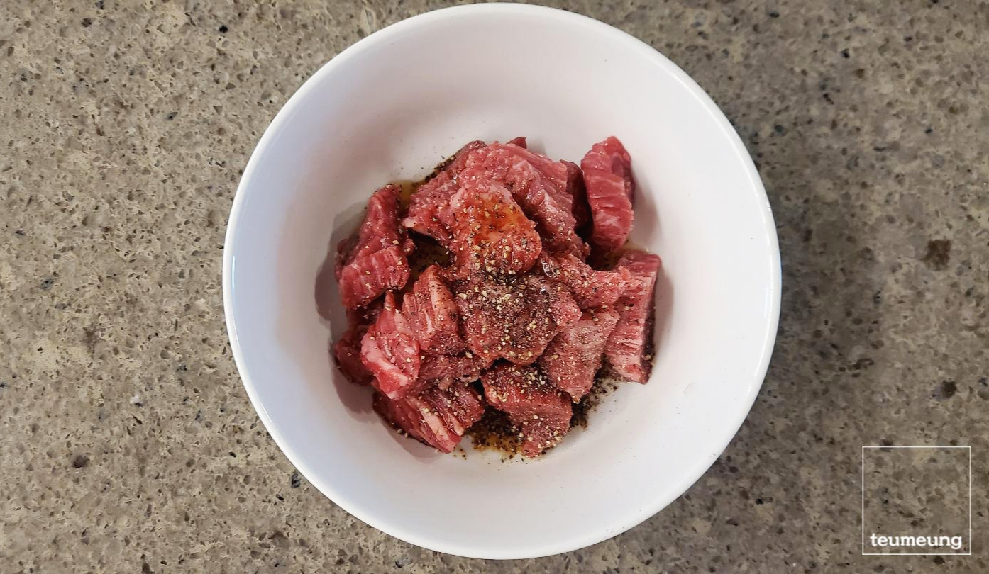 없다면 집에 있는 소고기를 먹기 좋은 크기로 잘라주면 된답니다.
