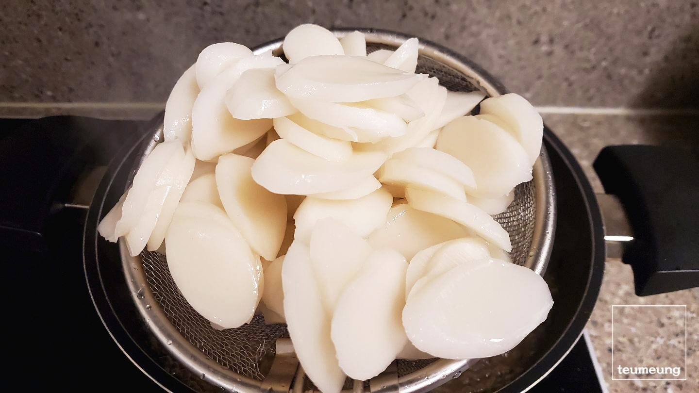 저렇게 달라붙어 있는 떡들은 물에 한 번 씻으면서 떼어주세요.