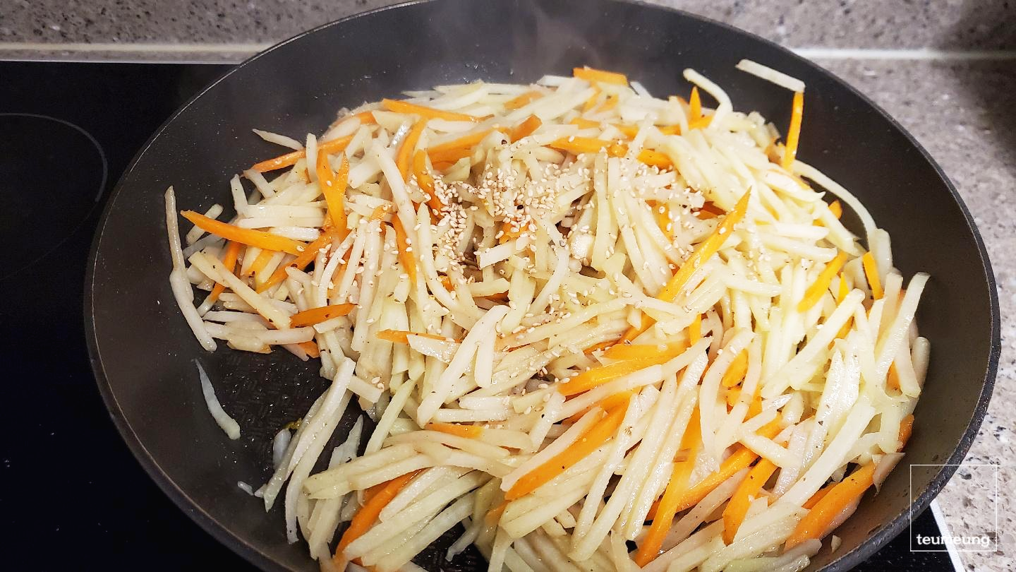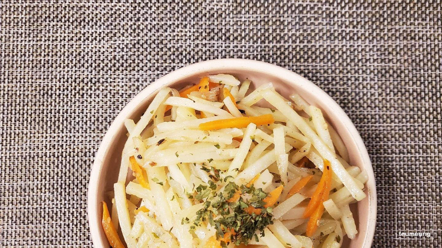 감자와 당근.. 채를 한곳에 다 썰어서... ㅎㅎ