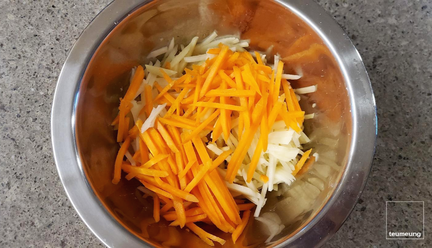 당근 한 개도 채 썰어서 넣어줄게요~!