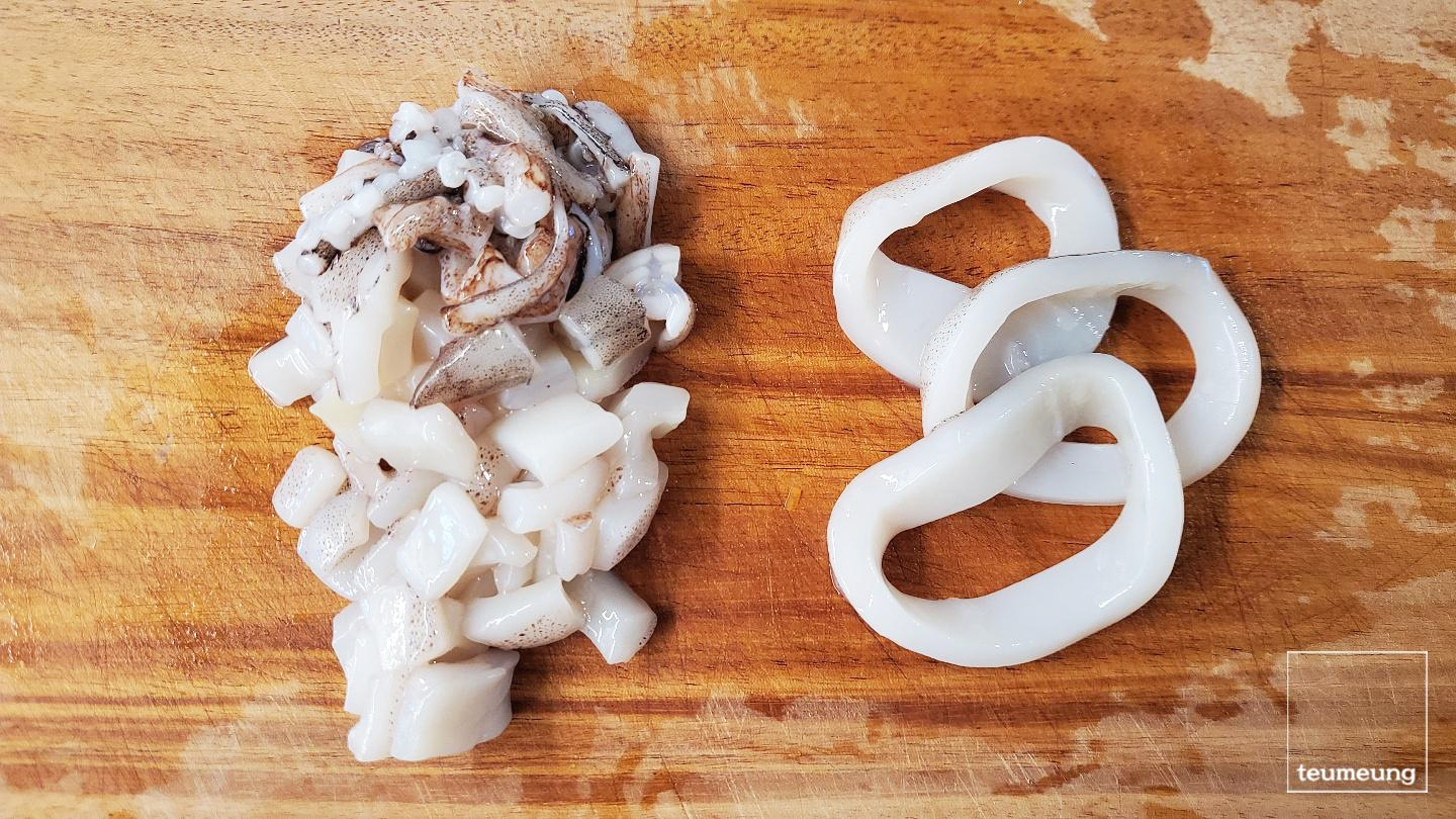 데코용으로 오징어링 모양 3개를 잘라뒀습니다.