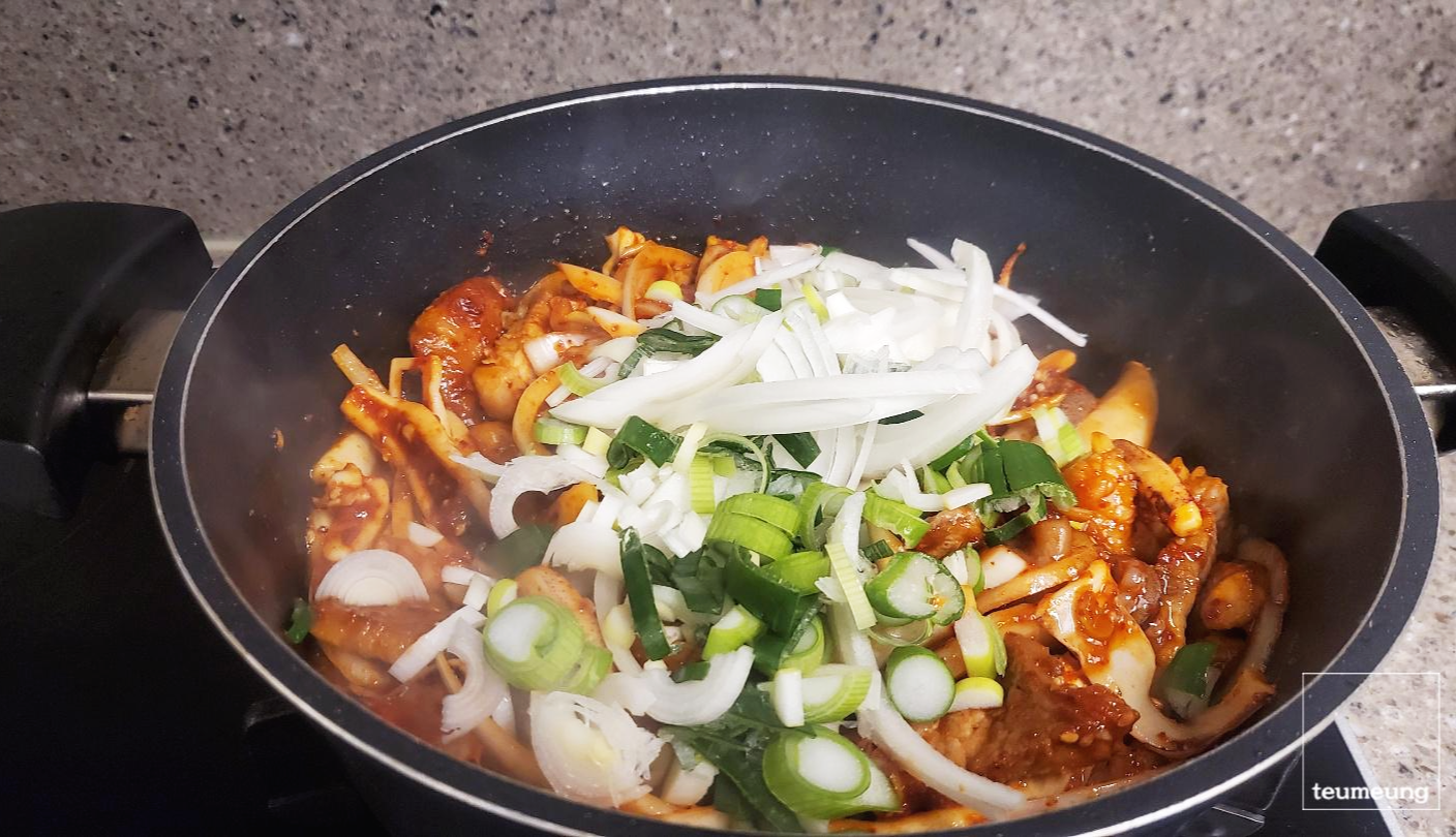 볶아주다 덜 넣은 양파와 파도 추가로 넣어줍니다~!