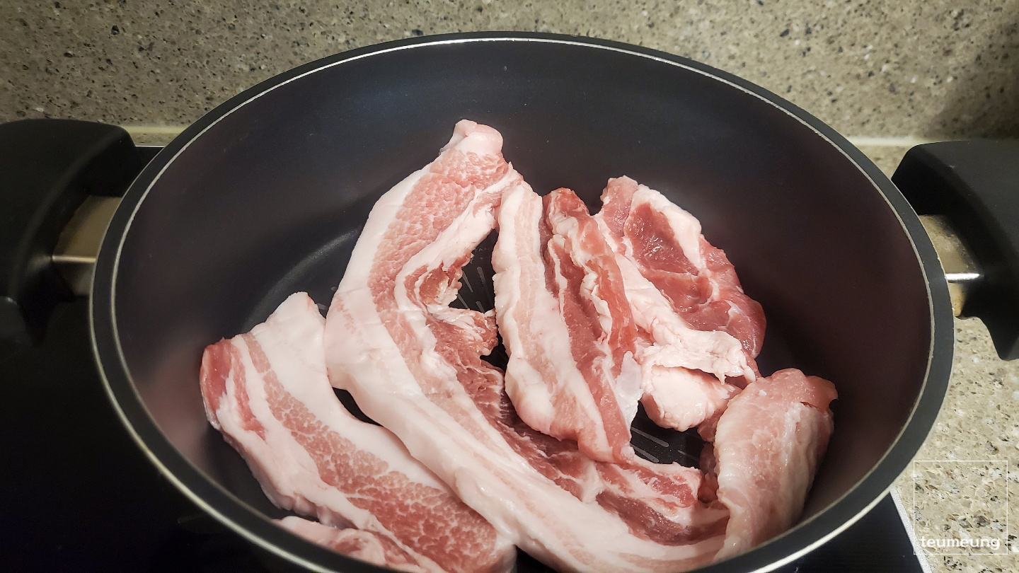 백종원 아저씨께서는 삼겹살 양념을 따로하지 않고 먼저 구워주더라구요!