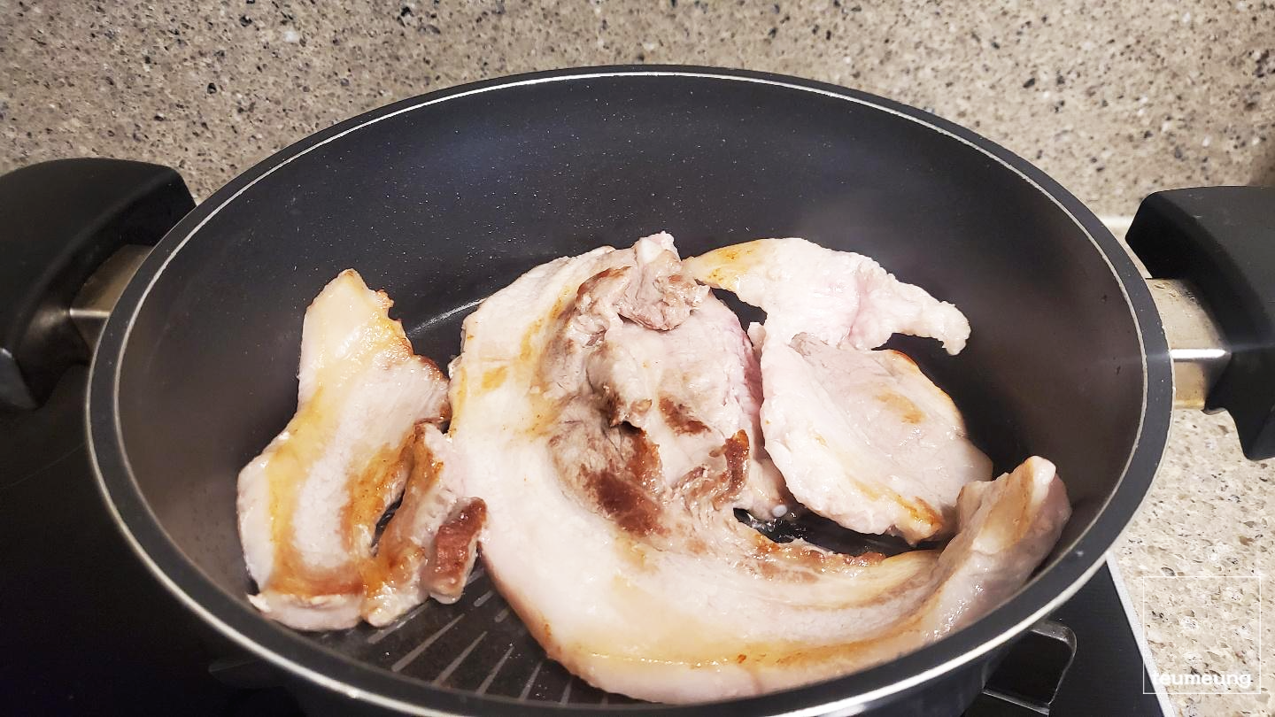 노릇노릇 삼겹살이 완전히 익도록 구워주고