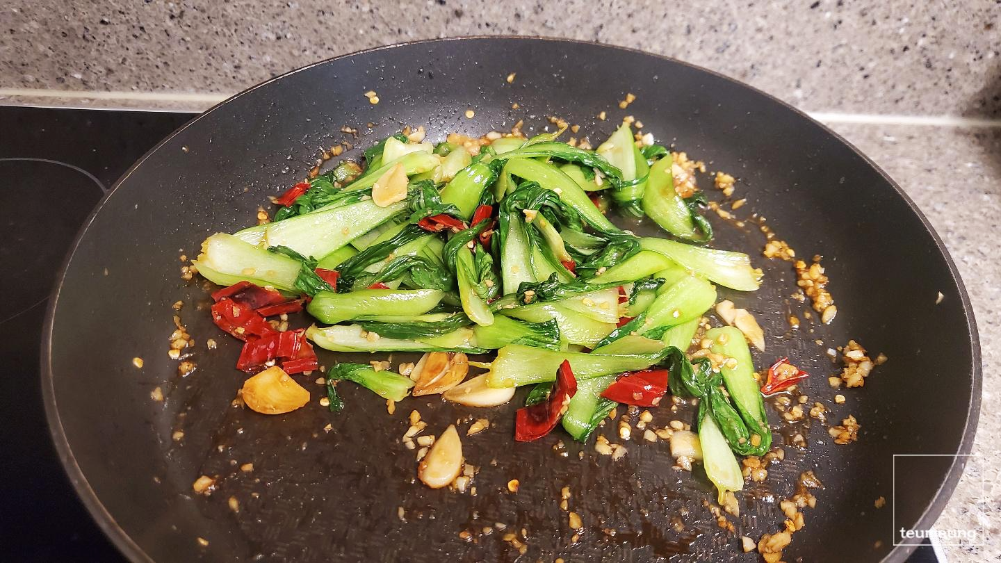 마늘향이 올라오면 청경채를 넣어줍니다.