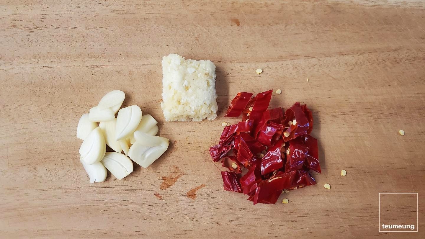 마늘은 편을 썬 마늘과 다진 마늘 한 큰 술을 준비했어요. ㅎㅎ