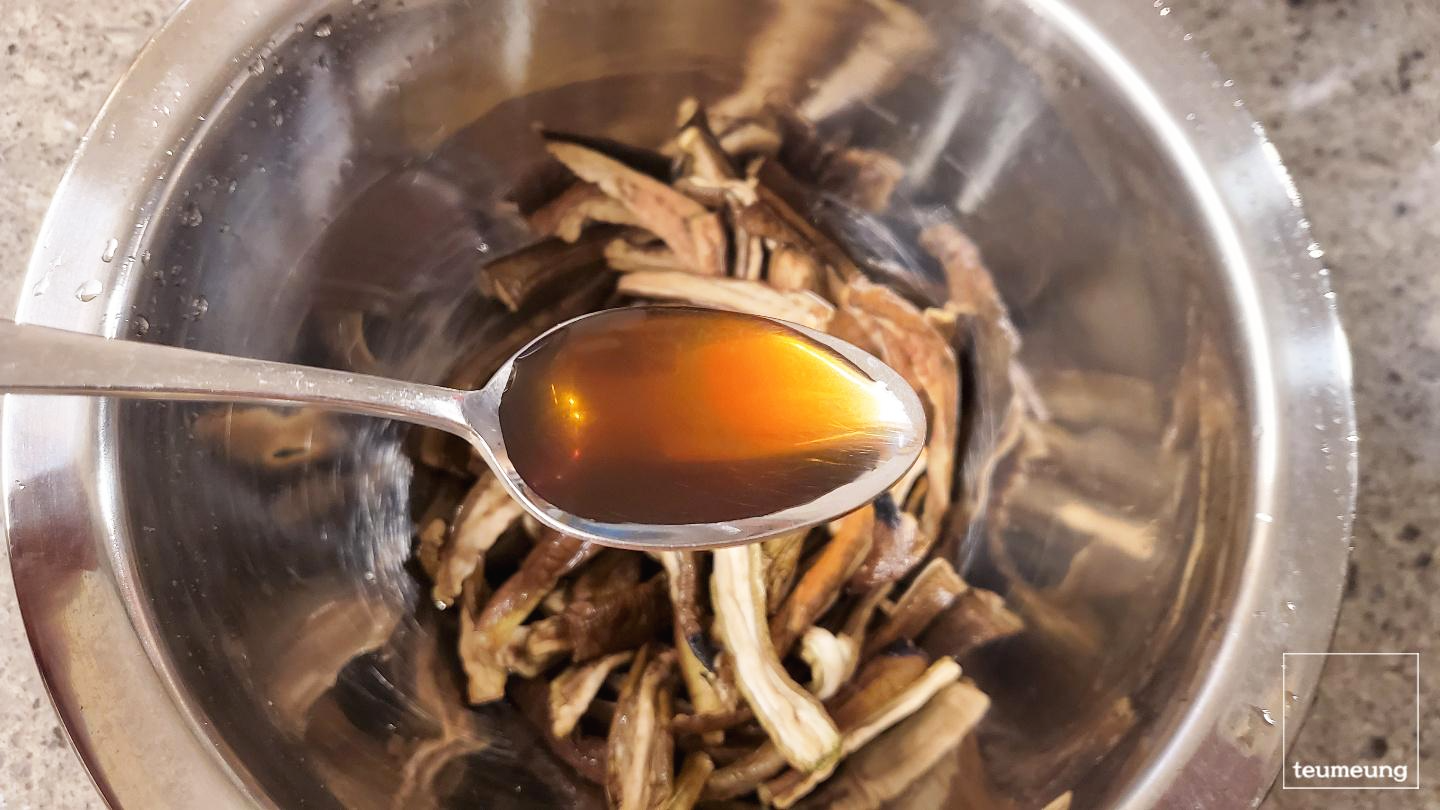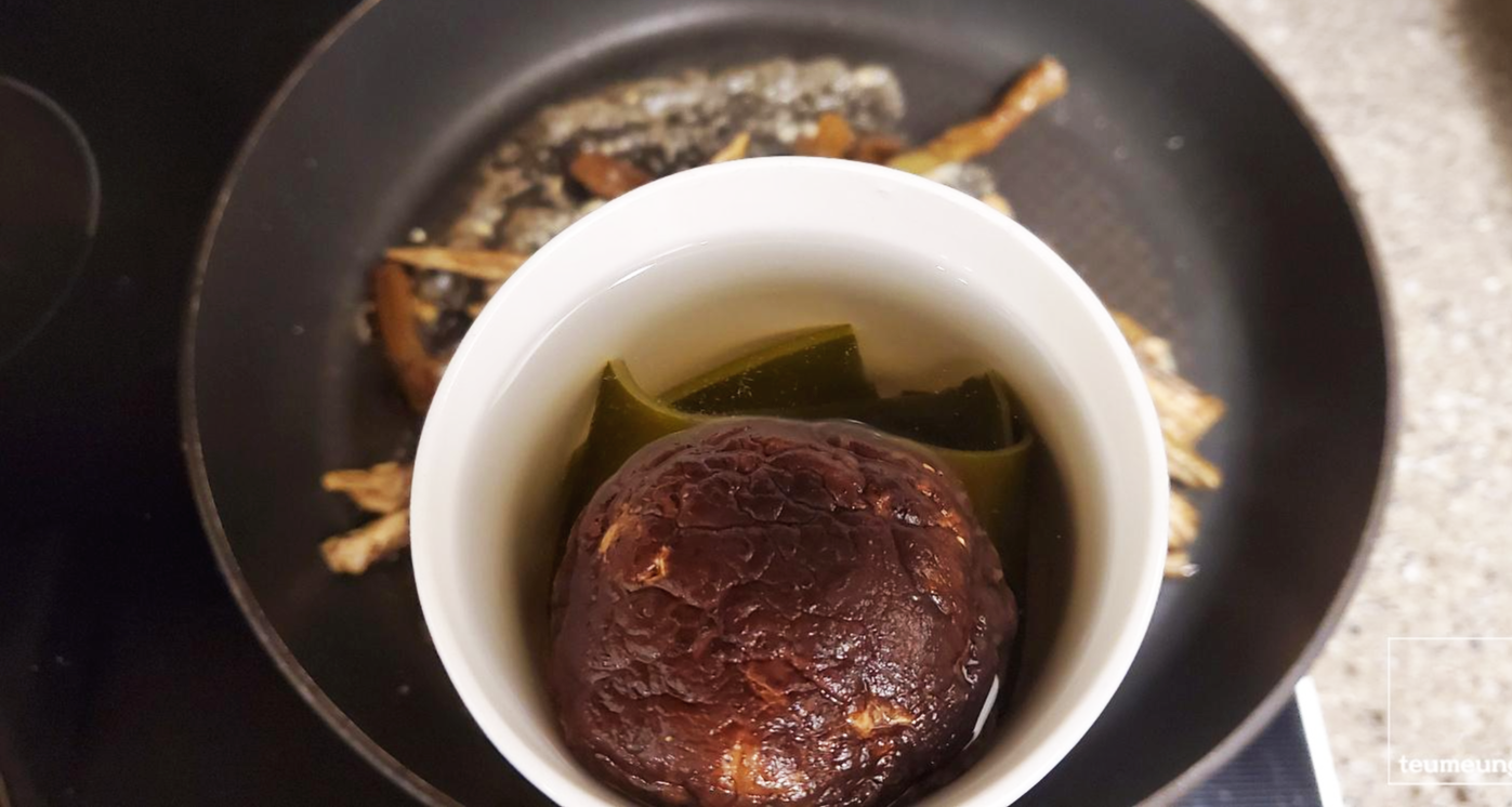 다시마와 표고버섯은 뜨거운 물에 담가서