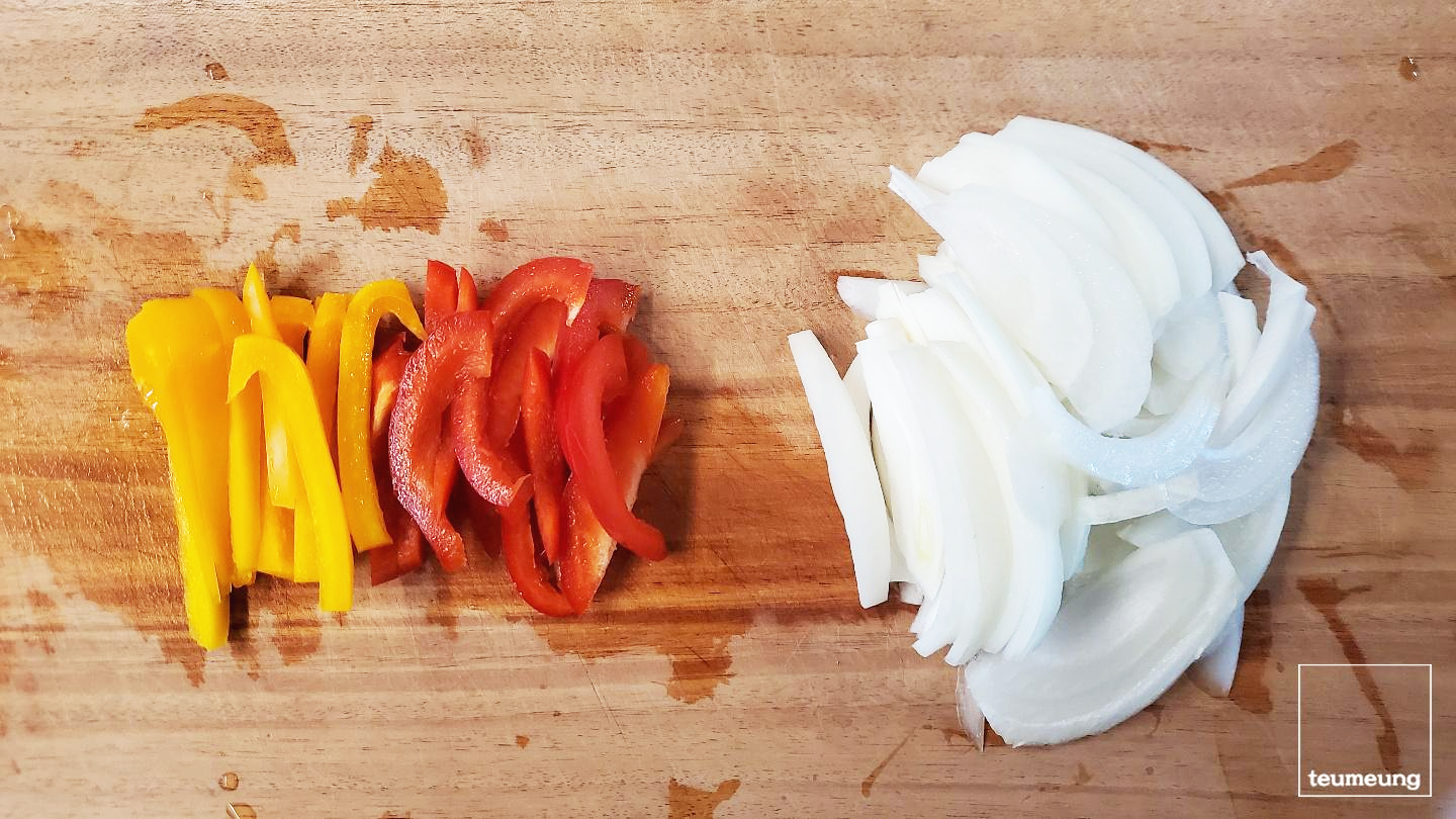 파프리카와 양파 반 개는 채를 썰어줍니다