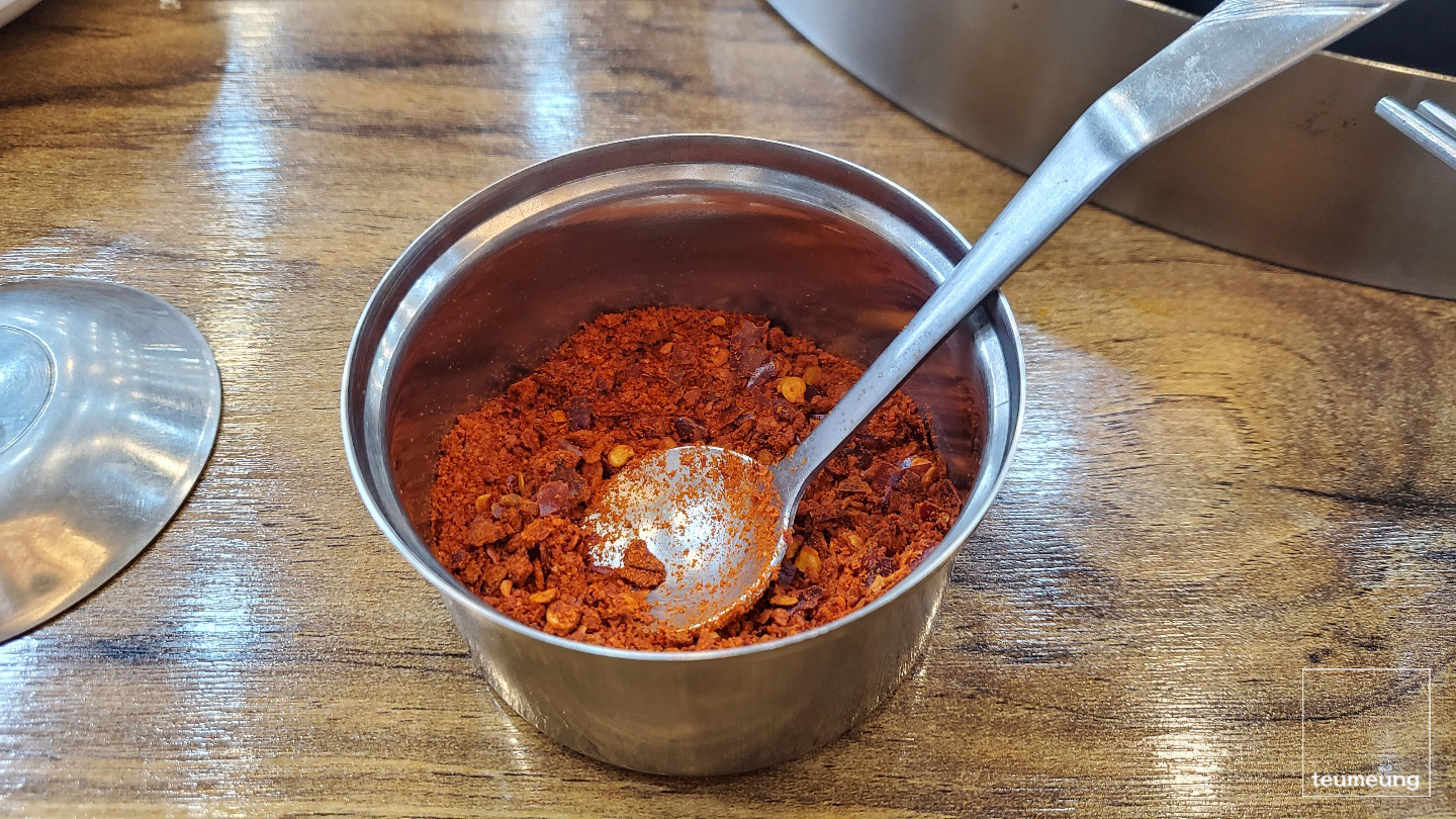 고추가루를 2-3 스푼 뿌려주니