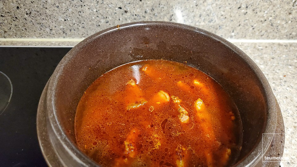 고기를 넣어야지 좀 더 진한 맛이 나더라구요 !