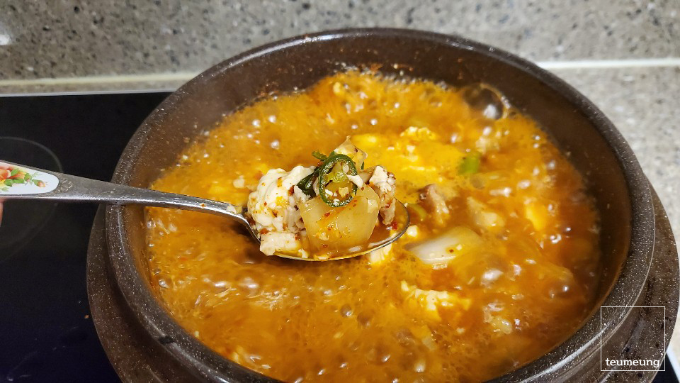 뜨끈한 < 삼겹살 순두부찌개 > 진한 국물, 얼큰한 순두부찌개 만들기