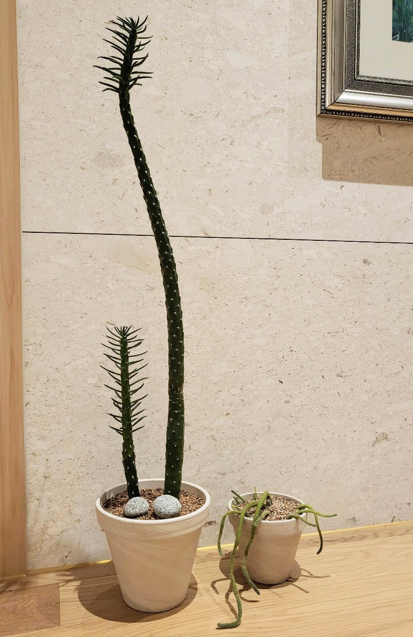 수개월 동안 혼자서도 잘 자라준 연필 선인장과 홍기린이다.. ^^