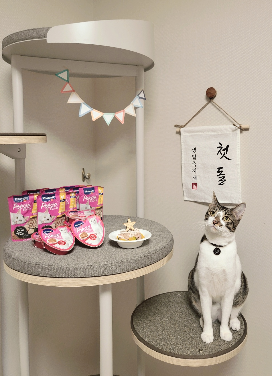 고양이 생일파티 < 반려묘 꽁치 생일파티 > 일룸 캣타워, 나인 케어 사료 추천