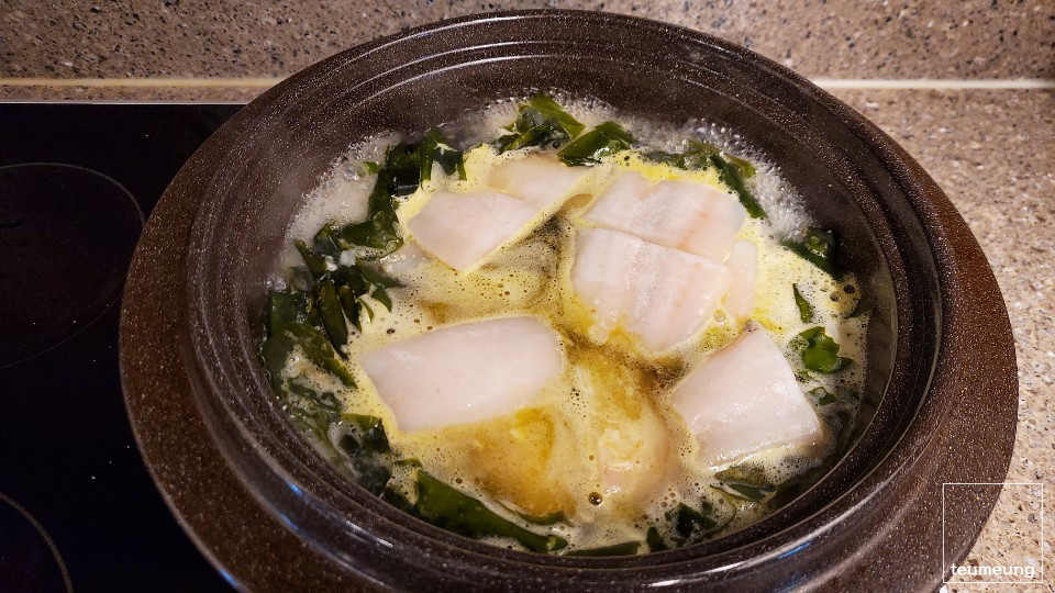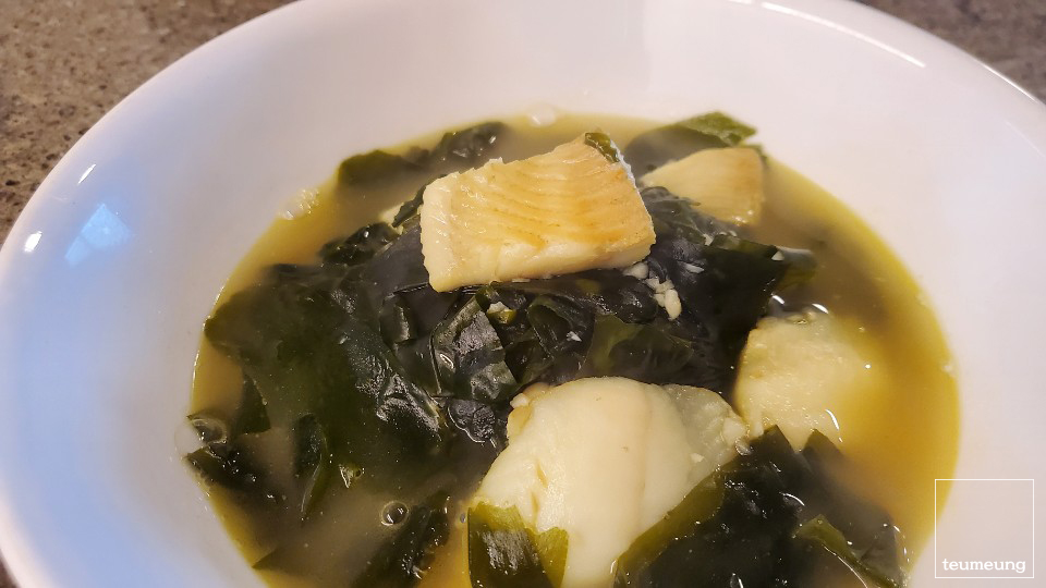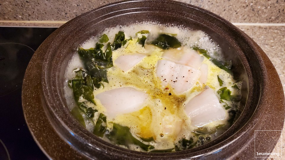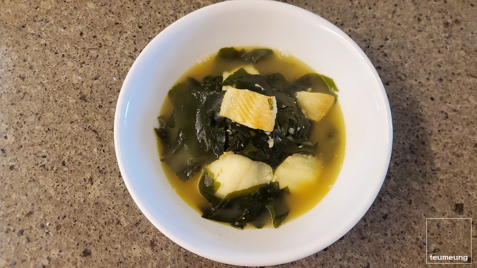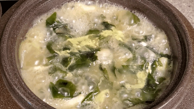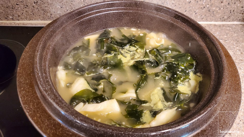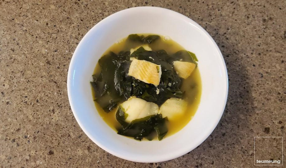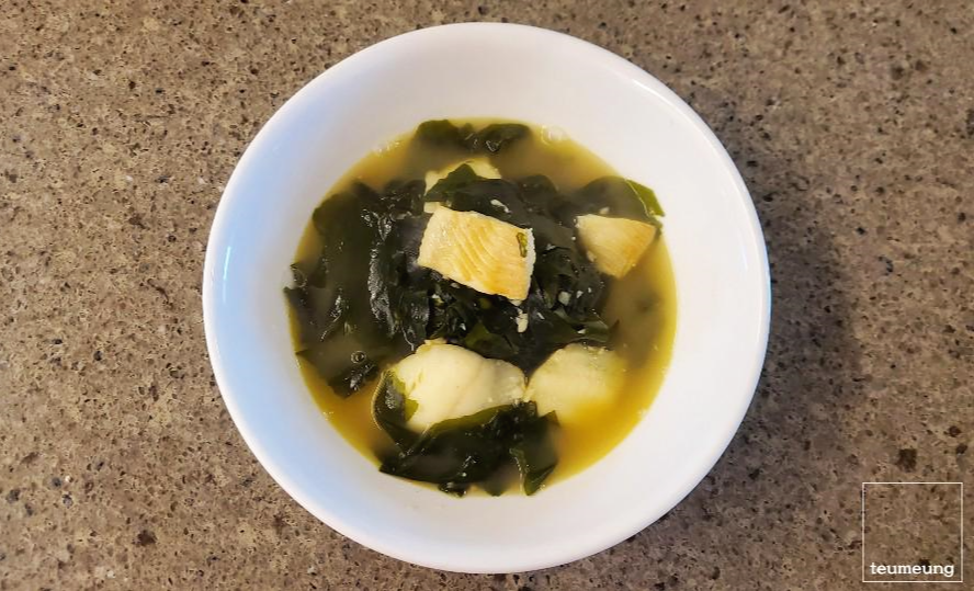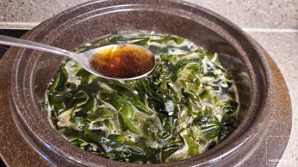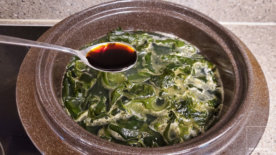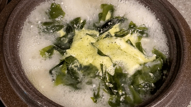 가자미로 인해 더 뽀얗고 고소한 미역국 완성