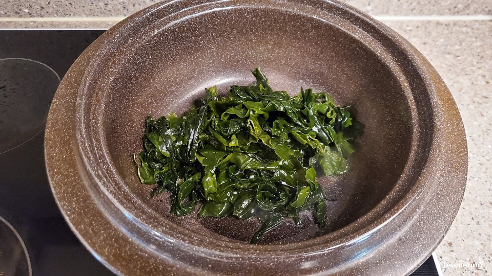 미역을 적당량 꺼내서 찬물에 불려줄게요