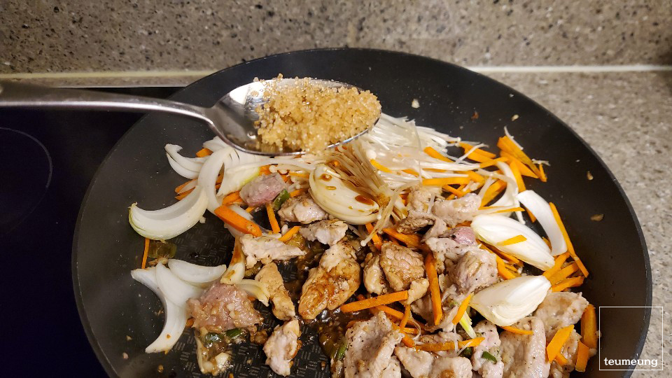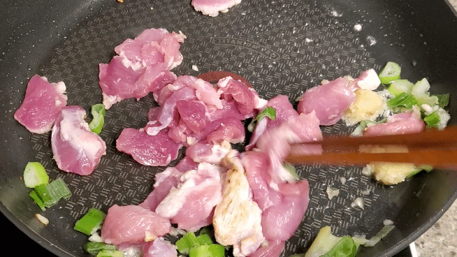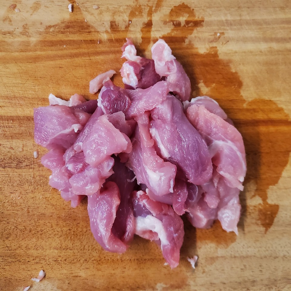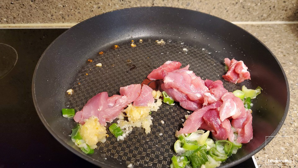 돼지고기 뒷다리 살을 넣고 볶아주세요