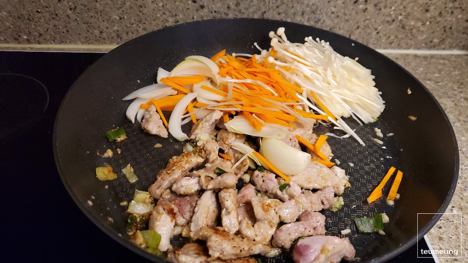 팽이버섯 당근 양파를 넣고 볶아줄게요