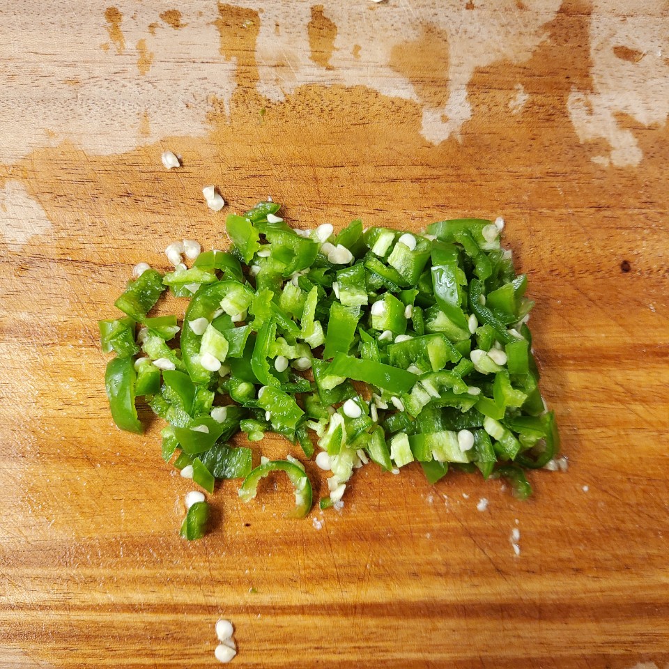 양념에 넣을 청양고추 2개도 다져서 준비했어요