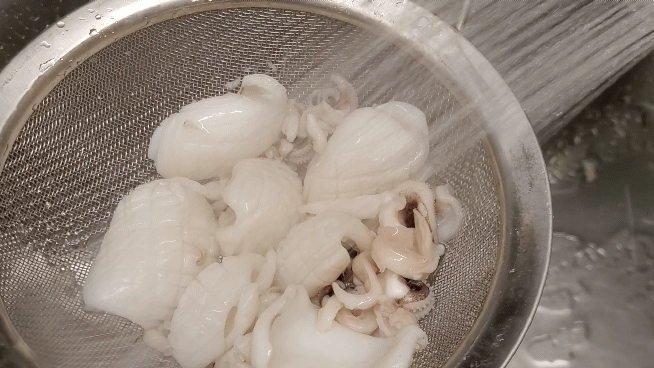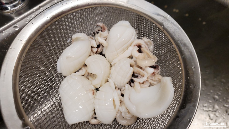 오징어들을 건져서 찬물에 잘 헹궈줄게요