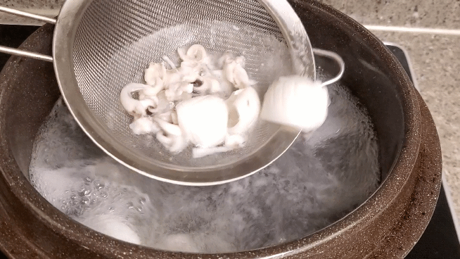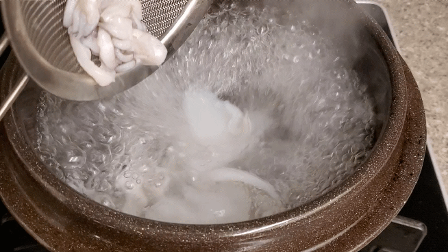 끓는 물 속으로 갑오징어를 넣어